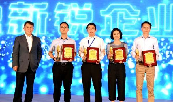 企業(yè)代表上臺(tái)領(lǐng)取金融新銳企業(yè)獎(jiǎng)現(xiàn)場(chǎng)照