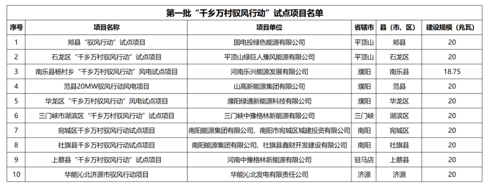 一、第一批共10個項目納入實施范圍,總裝機19.875萬千瓦。