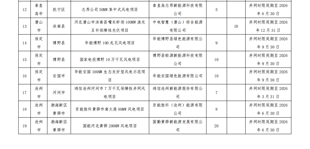 按照《河北省風(fēng)電、光伏發(fā)電項目開發(fā)建設(shè)管理辦法(試行)》要求,請各市進一步加強風(fēng)電、光伏發(fā)電項目管理,推動后續(xù)項目嚴(yán)格按照并網(wǎng)時限要求建成并網(wǎng),除不可抗力等客觀因素造成項目不能按期全容量投產(chǎn)的,未并網(wǎng)的項目一律取消、未并網(wǎng)的規(guī)模全部調(diào)減。
