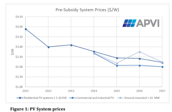 模塊價(jià)格下降 - 在2018年下半年中國光伏市場嚴(yán)重衰退的背景下 - 預(yù)計(jì)將在今年后期流入澳大利亞市場,從而提供年終增長。相比之下,APVI報(bào)告顯示,自2015年以來,光伏系統(tǒng)價(jià)格基本保持在2至2.50美元/ Wp(1.48-1.86美元)左右。