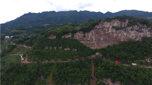 杰瑞壓裂車(chē)組行駛在四川頁(yè)巖氣地區(qū)蜿蜒的山路中