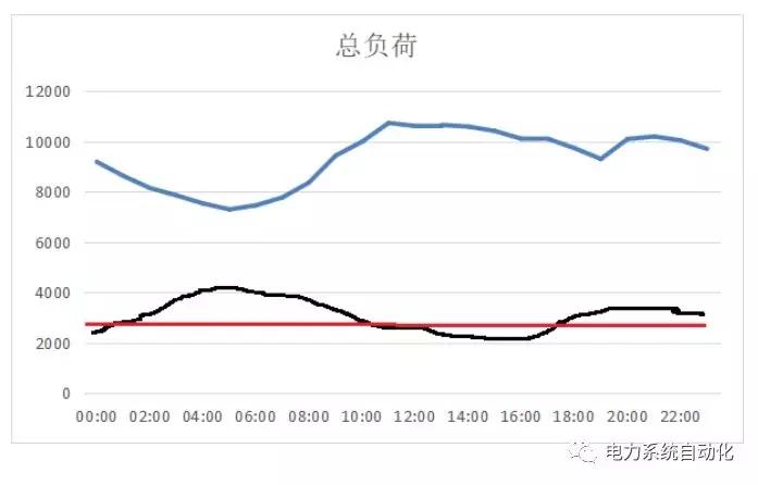 例如:某用戶并入電網(wǎng)的負(fù)荷特性曲線為(藍(lán)線),微電網(wǎng)一體化運(yùn)營主體可申報(bào)與并入電網(wǎng)峰谷反向的容量曲線(黑線)。同時(shí),一體化運(yùn)營主體申報(bào)容量曲線為一條直線(紅線)也存在技術(shù)可行性。