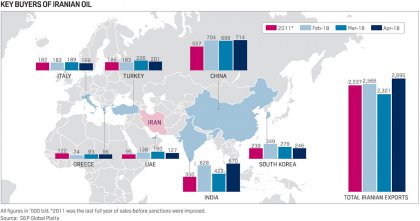 特點(diǎn)是,4月份對亞洲的出口從140萬桶增加到181萬桶,占伊朗原油出口總量的67%。另一方面,歐洲則從761降至7.16億桶。