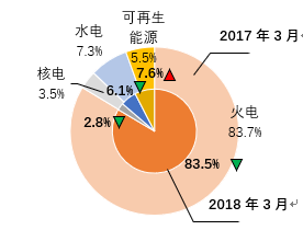 圖2 2017及2018年3月印度發(fā)電結(jié)構(gòu)變化
