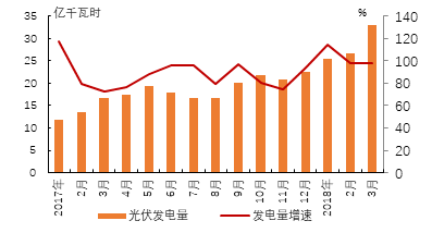 2018年3月,印度光伏發(fā)電量為33.1億千瓦時(shí),同比增長(zhǎng)98.2%,保持了高速增長(zhǎng)。一季度,印度光伏發(fā)電量85.4億千瓦時(shí),同比增長(zhǎng)102.8%。